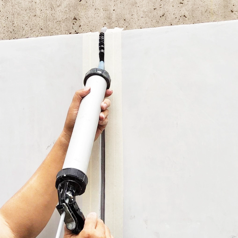 บรรจุซีลแลนท์ลงในปืนยิงซีลแลนท์ที่ออกแบบมาสำหรับบรรจุภัณฑ์ประเภทนี้โดยเฉพาะ และตัดปลายแท่งซีลแลนท์ออก