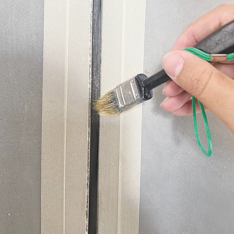 พื้นผิวของร่องรอยต่อ จะต้องทำความสะอาด ให้แห้ง ปราศจากฝุ่น เช็ดอีกครั้งด้วยผ้าสะอาดไม่มีขุย